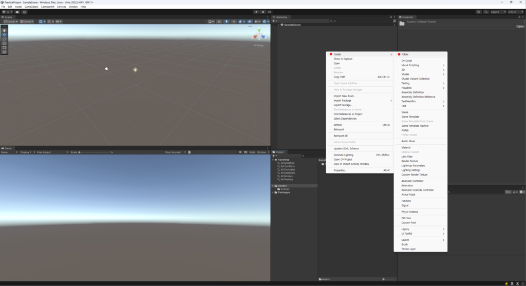 앞으로의 간단한 Unity 프로젝트들은 위 과정을 통해 생성된 기본 베이스를 바탕으로 진행될 것입니다.