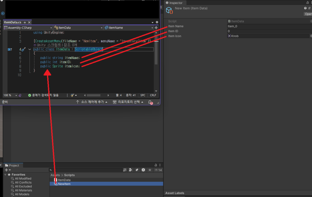 - [CreateAssetMenu]: Unity Editor에서 에셋을 쉽게 생성할 수 있도록 메뉴 옵션을 추가합니다.