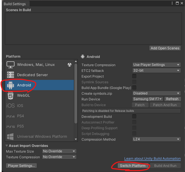 Unity Android Platform 설정하기
