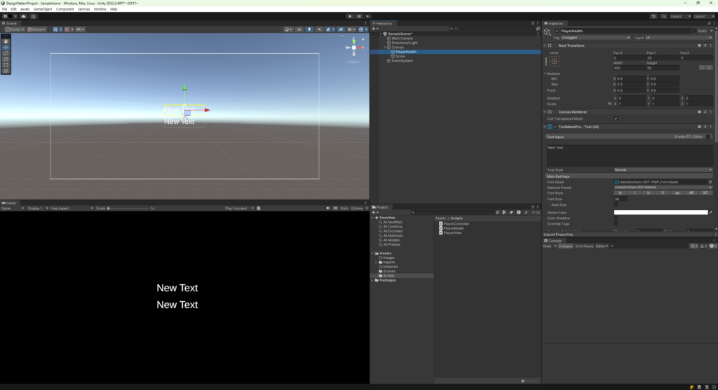 이제 View를 구현해보겠습니다. View는 사용자에게 데이터를 보여주는 역할을 합니다. 예를 들어, PlayerView라는 클래스를 통해 화면에 플레이어의 체력과 점수를 표시할 수 있습니다.